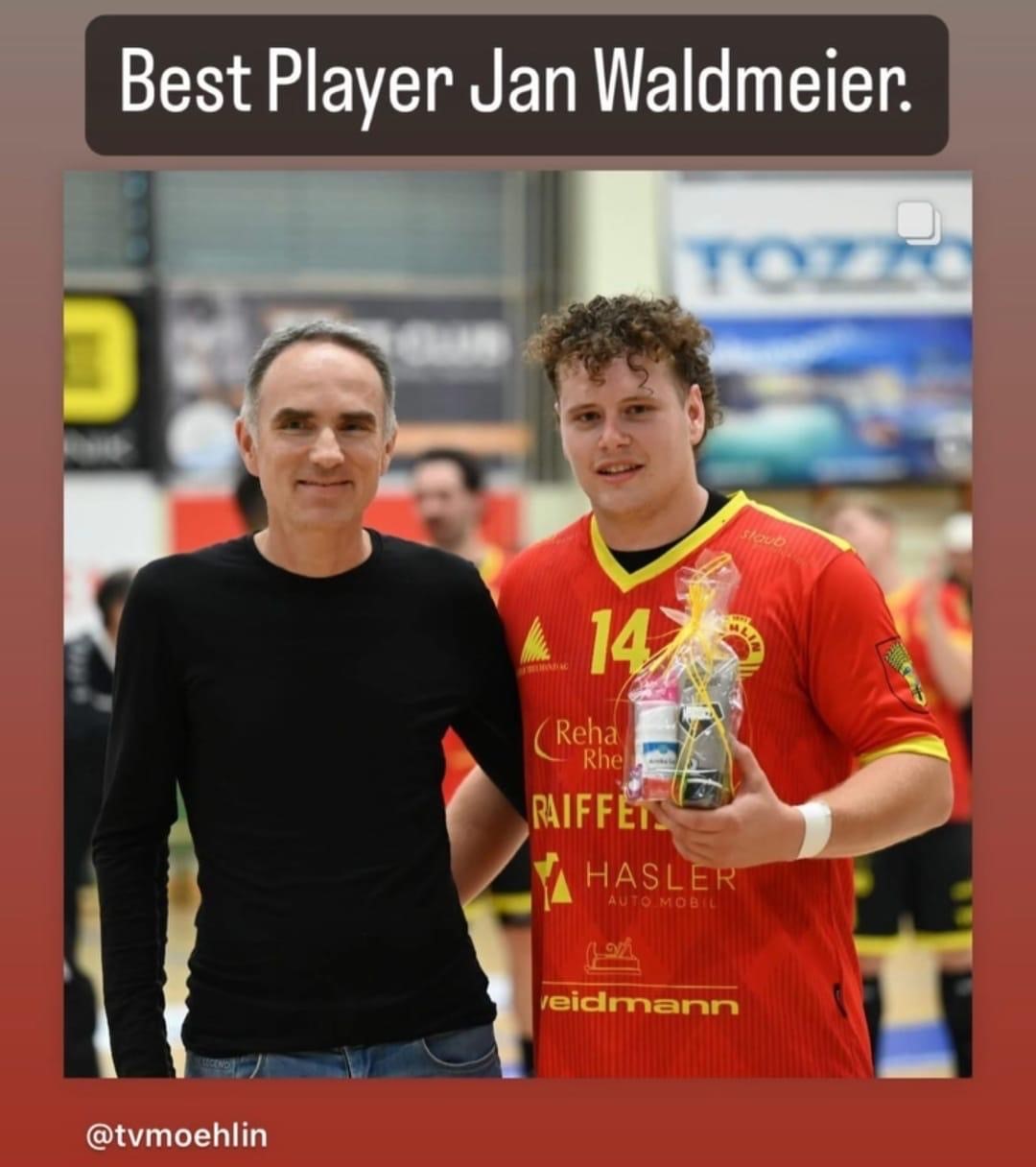 Anlässlich des Heimspiels des TV Möhlin gegen BSV Stans hat Pius Koller den Best Player Preis an Jan Waldmeier überreichen dürfen. Wir gratulieren Jan Waldmeier und wünschen ihm und seinem Team weiterhin alles Gute in der laufenden Saison.
